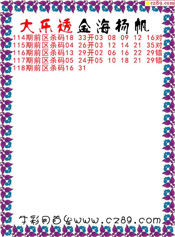 首页 > 大乐透预测 > 大乐透2025118期金海扬帆前区杀号图谜